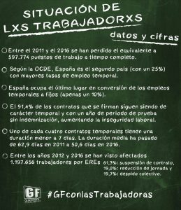 Desde que comenzara la crisis se han llevado a cabo dos reformas laborales (una del PSOE y otra del PP) que no hicieron sino reducir el poder de negociación de los y las trabajadoras, aumentar la temporalidad de los contratos y la precariedad, así como bonificar a las empresas incentivando el despido de trabajadores y trabajadoras o facilitando las condiciones para la realización de ERE’s, incluso en el caso de empresas con beneficios.