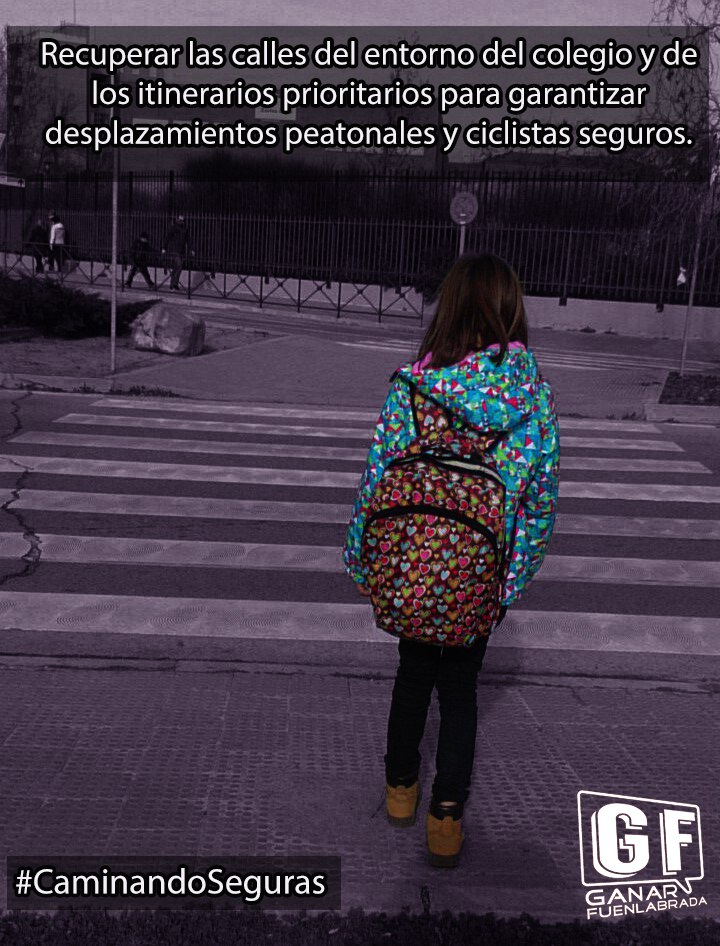 La segunda de nuestras mociones habla sobre la creación de rutas escolares seguras en Fuenlabrada. Nuestra moción plantea la elaboración de un mapa de movilidad para impulsar un proyecto de «ruta escolar segura» y su implementación, así como que se realicen campañas para el fomento de los desplazamientos a pie y la utilización de bicicletas para los más peques y jóvenes del municipio a sus colegios e institutos.