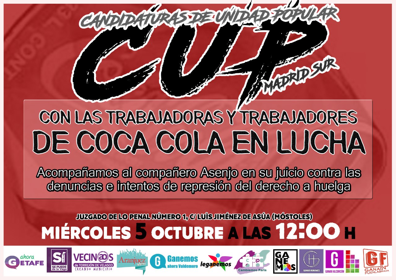 Se aprovecha también la rueda de prensa para convocar a la concentración el próximo miércoles 5 de octubre a las 12:00h en el juzgado de lo penal de Móstoles en apoyo al trabajador juzgado de Cocacola en lucha.
