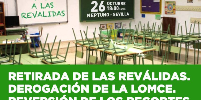 La implantación de la LOMCE está haciendo que la Educación se convierta en un servicio excluyente y no en un derecho fundamental y universal. Por ello nos oponemos a ella y exigimos su derogación, la inmediata retirada de sus reválidas y la reversión de las políticas educativas neoliberales que recortan sobre nuestra Escuela Pública en favor de la Escuela privada-concertada.