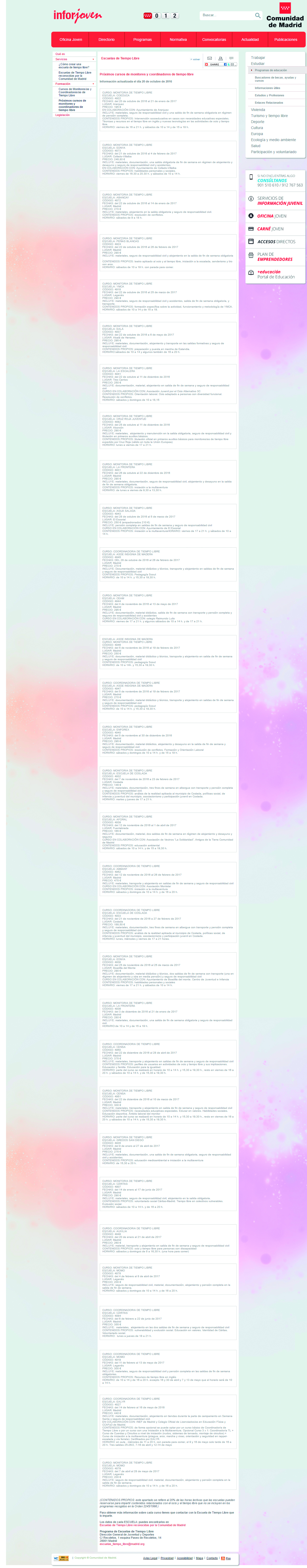 Imagen de la página web madrid.org. Actualizada a 20 de Octubre de 2016