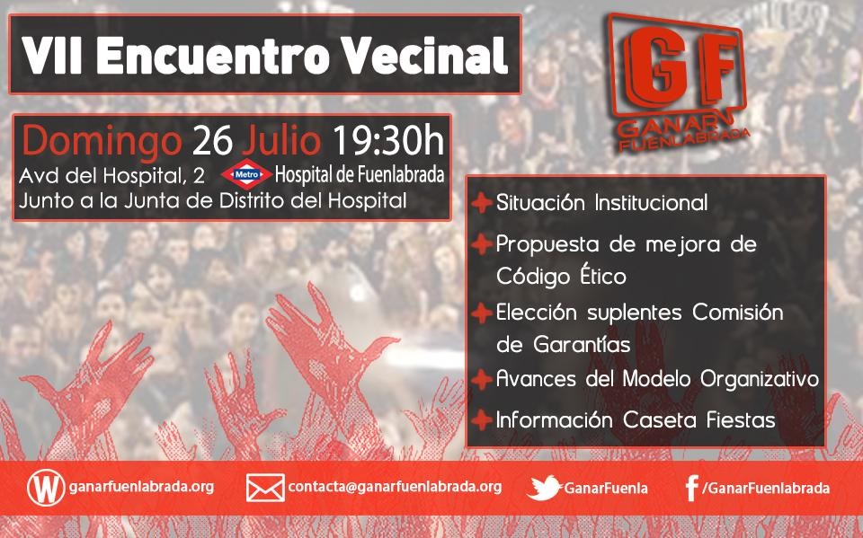 El próximo Domingo 26 de Julio a las 19:30h junto a la Junta de Distrito del Hospital: VII ENCUENTRO VECINAL