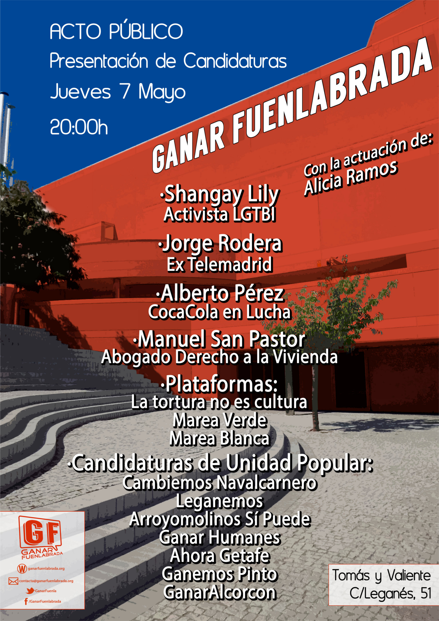 Mañana jueves 7 de mayo, a las 20h, tendrá lugar la presentación de GANAR FUENLABRADA con tod@s sus candidat@s.